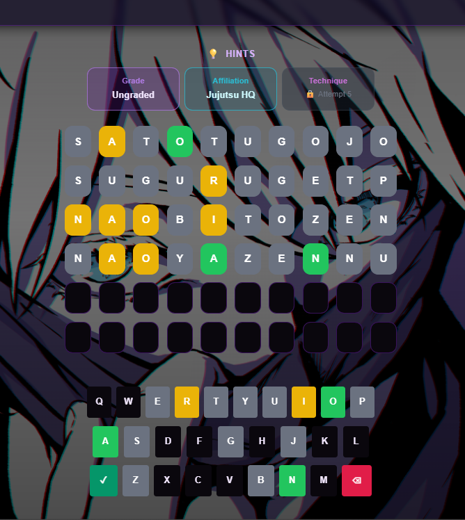 Guess the hidden JJK-related word within 6 tries.